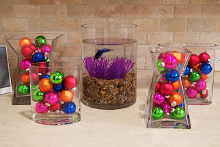 (Ball ornaments are such an inexpensive and easy way to decorate, although my hubby did say all the colors might give our fish a heart attack - so far, he's fine).